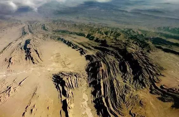 阿富汗喀布尔南部倾伏的向斜与背斜