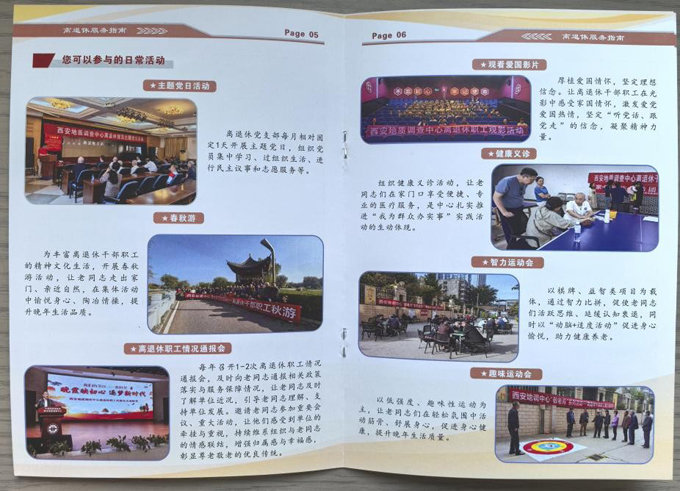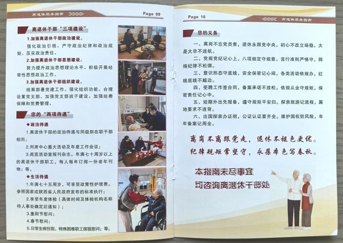 近日,自然资源部西安地质调查中心正式编印推出《亲爱的您——离退休服务指南》手册,以系统化、便捷化、实用化的服务手册,深入贯彻习近平总书记关于老干部工作的重要论述,全面落实“用心用情、精准服务”工作要求,更好满足离退休干部职工多样化、多层次服务需求,推动离退休工作提质增效、暖心升级。