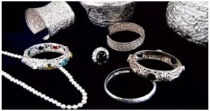 4、 听声韵:纯银首饰饰品掷地有声,无弹力,声响为 “卟哒”。成色越低,声音越低,且声音越尖越高而带韵;若为铜质,其声更高且尖,韵声急促而短;若为铅、锡质地,则掷地声音沉闷、短促,无弹力。