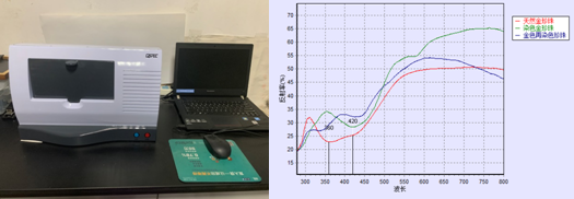 紫外可见光谱仪天然金珍珠、染色金珍珠和金色再染色珍珠紫外可见光谱图