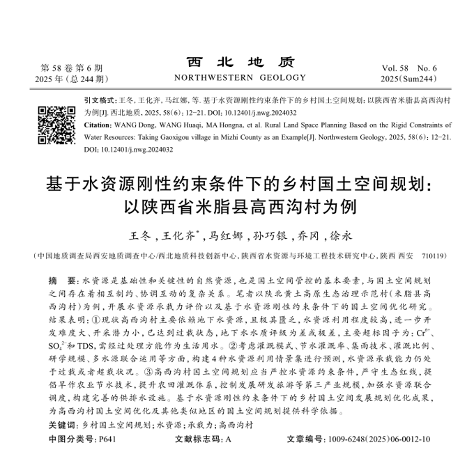 基于水资源刚性约束条件下的乡村国土空间规划:以陕西省米脂县高西沟村为例