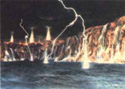 (2)深浅多变的广阔海洋中散布少数孤岛:当时地球的表面,还是海洋占有绝对优势,陆地面积相对较少,海洋中散布着孤零的海岛,地壳处于十分活跃状态,海洋也因强烈的升降运动,而变得深浅多变。陆地上也有多次岩浆喷发和侵入,使上面局部地区固结硬化,使地壳慢慢向稳定方向发展,因此太古代晚期形成了稳定基底地块——“陆核”。陆核出现,标志地球有了真正的地壳。